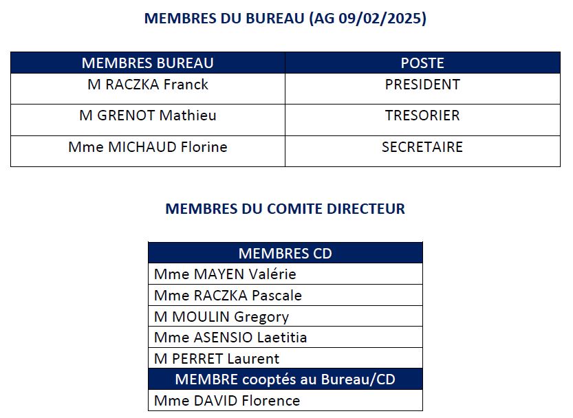Prochaine assemblée générale en septembre 2025 pour la saison 2025-2026.
